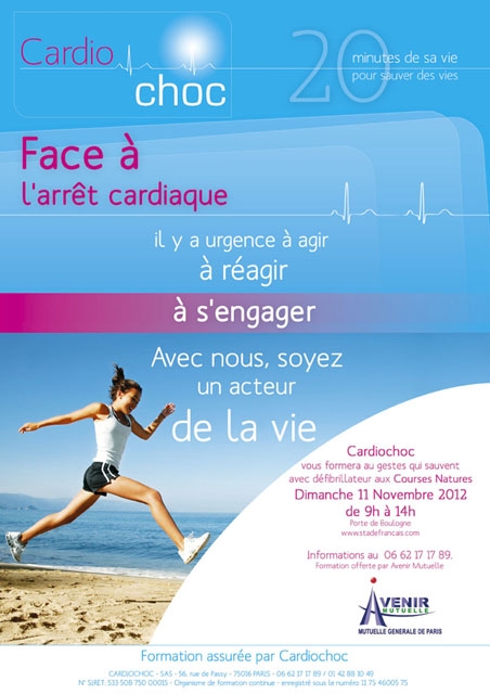 Nous sommes heureux de vous inviter aux formations aux gestes qui sauvent avec défibrillateur qui auront lieu lors de la 10e édition des Courses Nature du Stade Français qui se déroulera le 10 novembre prochain au Bois de Boulogne (Carrefour des Anciens Combattants, rond-point au bout du Boulevard d’Auteuil).